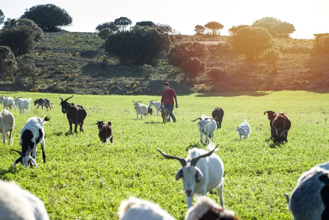 A base de dedicación, de mucho esfuerzo, Óscar y yo estamos conformando una pequeña cabaña de unas quinientas cabras. Aquí el paisaje es suyo. Estepa, llanura salpicada de chaparras, campos de cereal, pinos y hierbas aromáticas. Una crianza natural, respetuosa, ecológica, para lograr una carne con un sabor único.