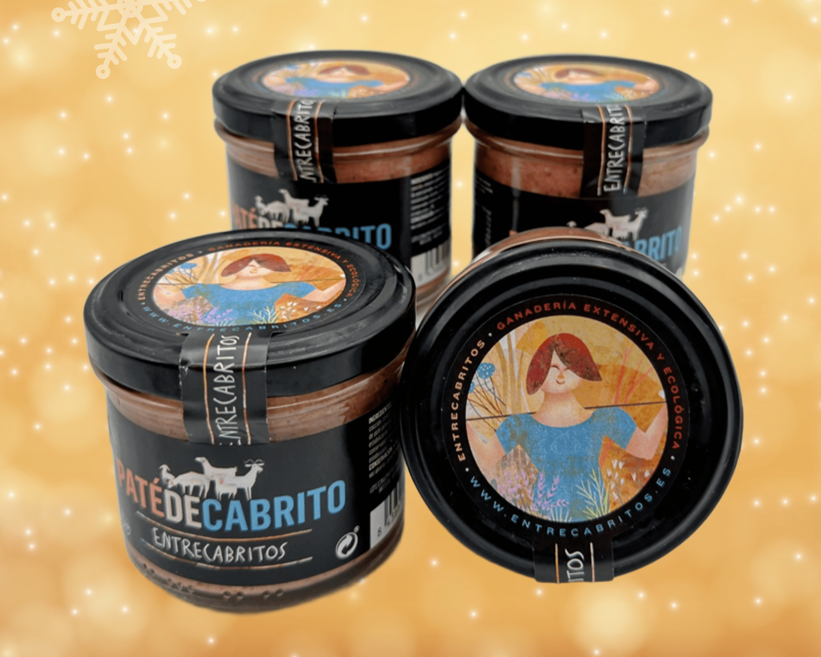 Cuatro Patés de Cabrito (4 x 100 gr): Cada lata contiene la esencia pura del sabor tradicional. Un paté de textura sedosa y una riqueza inconfundible, cuyos matices evocan los aromas sutiles del monte.